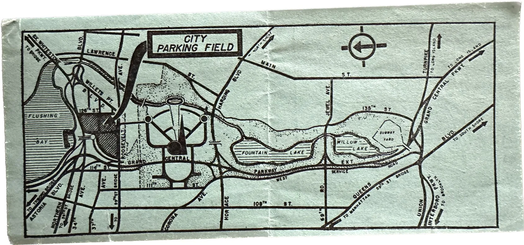 A map on a parking lot ticket to help customers find their vehicle at the 1939 New York World’s Fair.